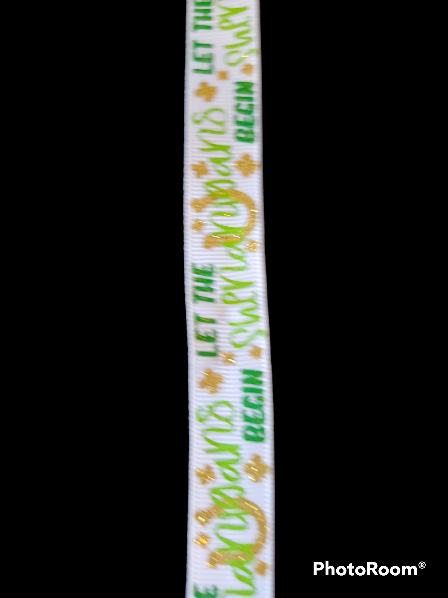 The ink is printed on one side of grosgrain ribbon.