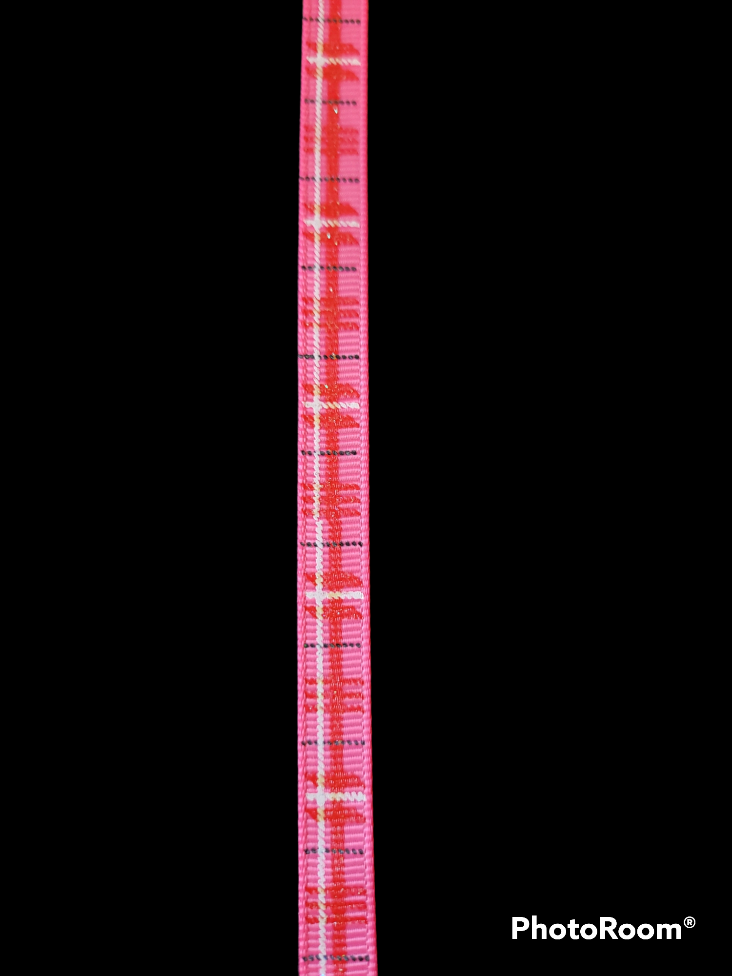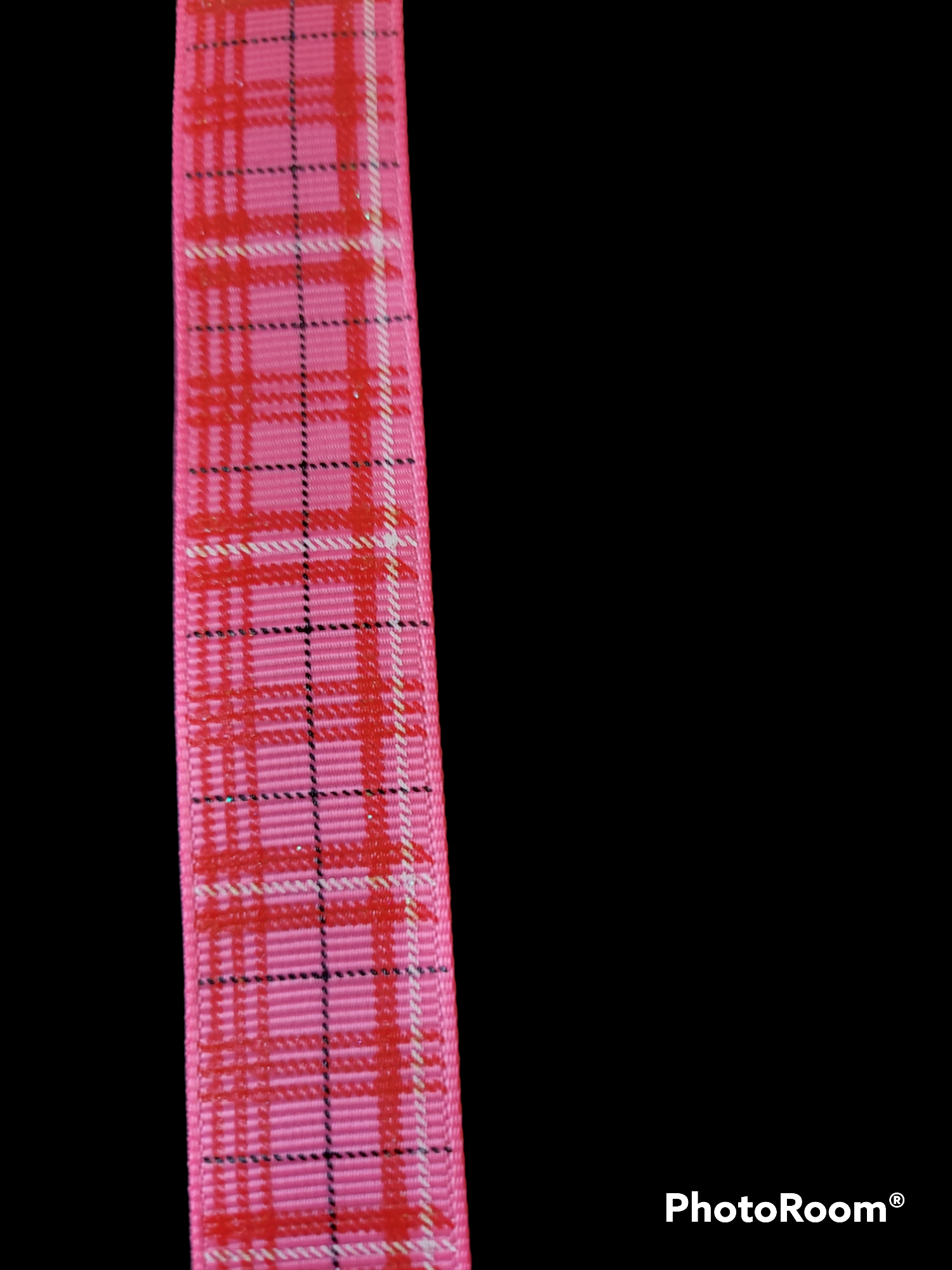 USDR lightly glittered red, white, pink plaid grosgrain ribbon